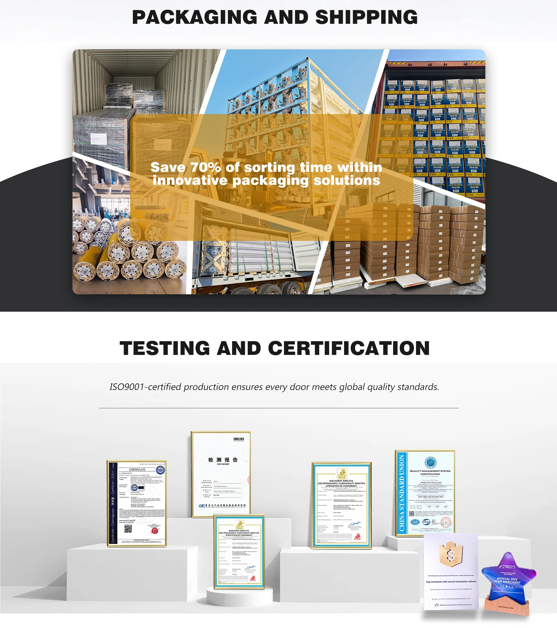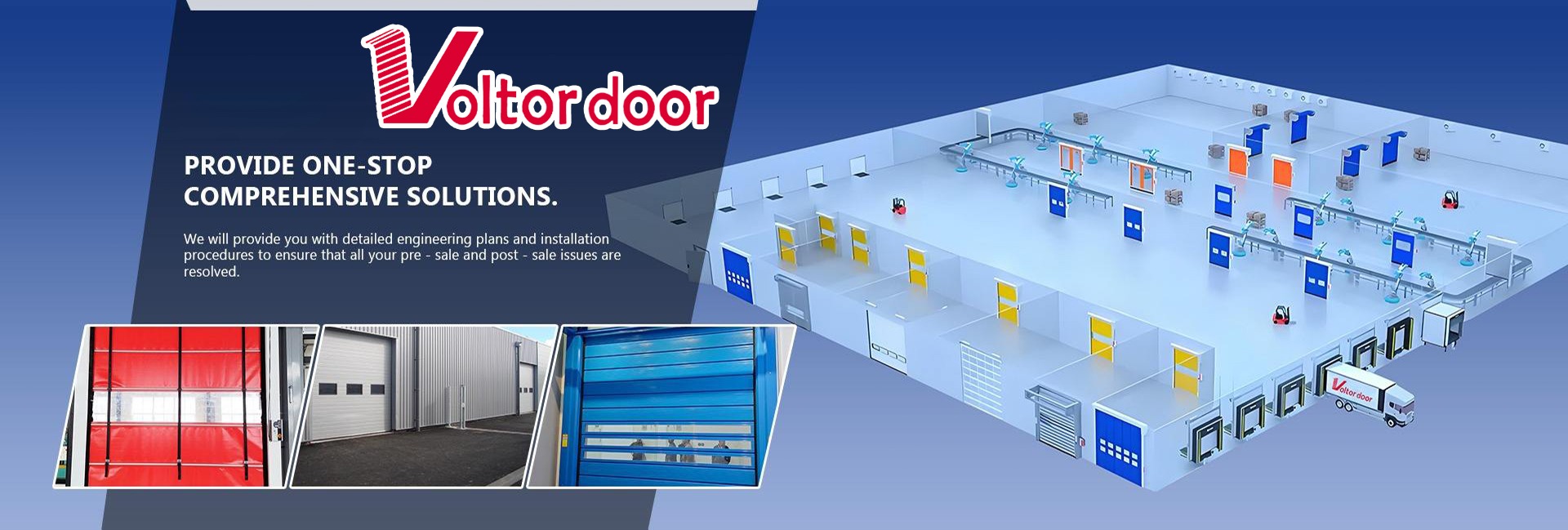 Principaux produits : Porte industrielle sectionnelle, Porte roulante en aluminium, Porte rapide, Porte roulante en acier, Porte de garage sectionnelle